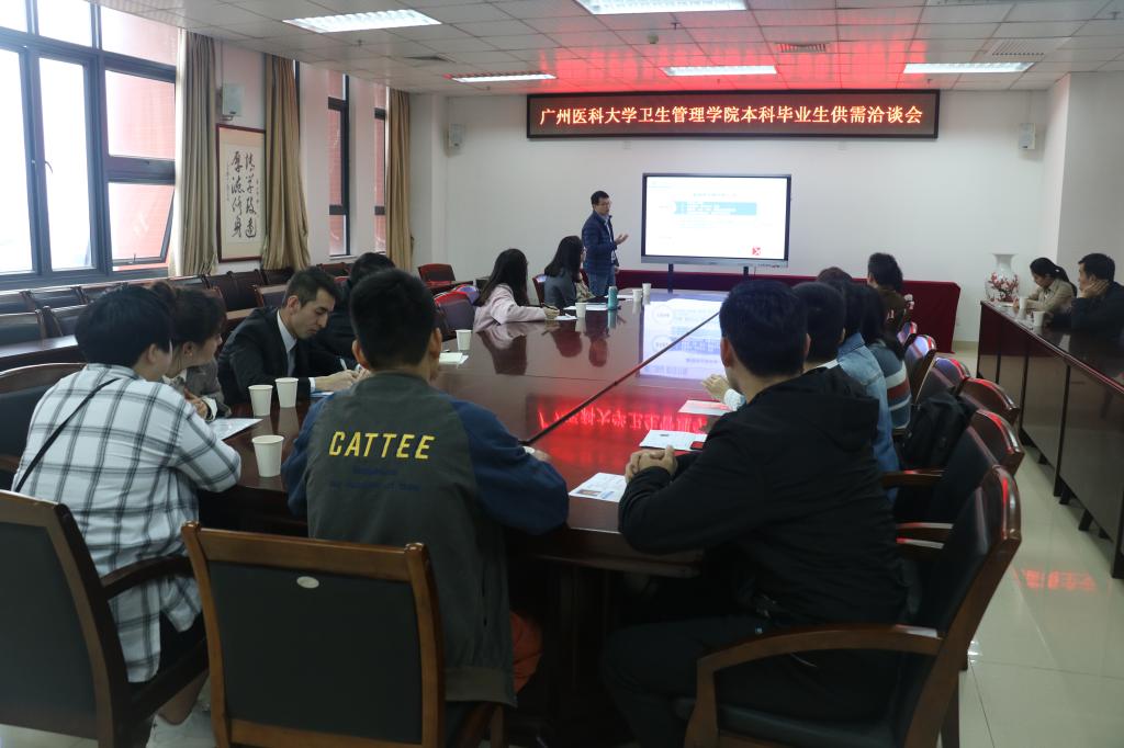 3月7日下午,广州市杏林传说文化传播有限公司和广州泉能药业集团相关部门负责人和工作人员到我院开展现场招聘本科毕业生活动。我院领导刘俊荣院长、尚鹤睿副院长在学院会议室接待来宾,并介绍了我院情况及本科毕业生情况。随后,来宾也向到场的师生介绍公司状况及招聘岗位情况,并对由我院推荐的10多名2019届优秀本科毕业生进行现场面试。