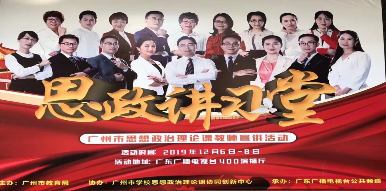2019年12月8日,由广州市教育局主办的广州市思想政治理论课教师宣讲活动——思政讲习堂,在广东广播电视台演播大厅完美收官,我院青年教师张建博士荣获广州市思想政治教育十佳宣讲教师称号。