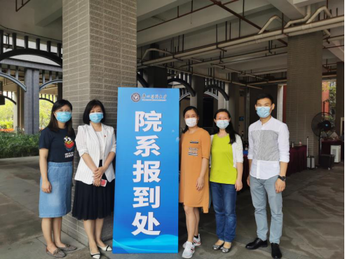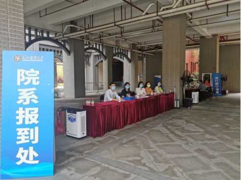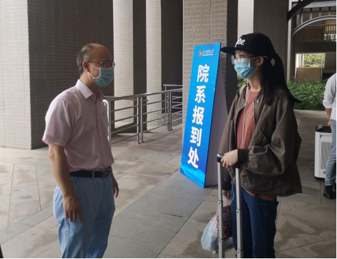 学院辅导员老师返校日当天在院系报到处迎接学生