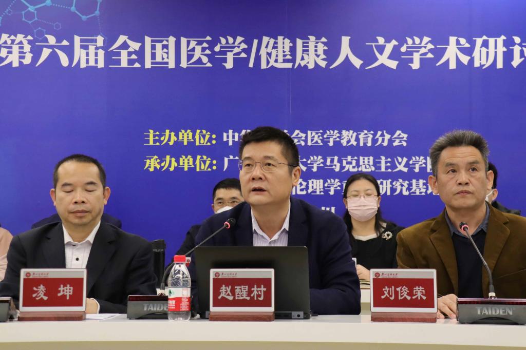 赵醒村校长在致辞中强调,我校以共和国勋章获得者钟南山院士为榜样,将“南山精神”深度融入教书育人的各环节,通过实施“三化三合三体系”育人新模式,强化学生责任担当意识、专业知识技能和职业精神培养,致力于将医学人文教育、职业素质教育贯穿于教育教学的全过程。学校和附属医院先后创建了抗非典纪念馆、生命伦理教育馆、抗疫主题展览馆等内容丰富的医学人文教育基地,促进了医学人文素质教育与专业教育的有机结合。他指出,党的二十大精神为我们探讨健康人文领域的相关问题指明了方向。医疗卫生工作,要把医学发展的理念从以治疗为中心转变为以健康为中心,把健康中国的理念融入到高校教育教学的全过程;要切实加强医学生的人文素质教育,提升其健康人文素养;要大力开展健康科普教育,不断提升大学生和公众的健康素养,真正履行每个人都是自己健康第一责任人的义务。