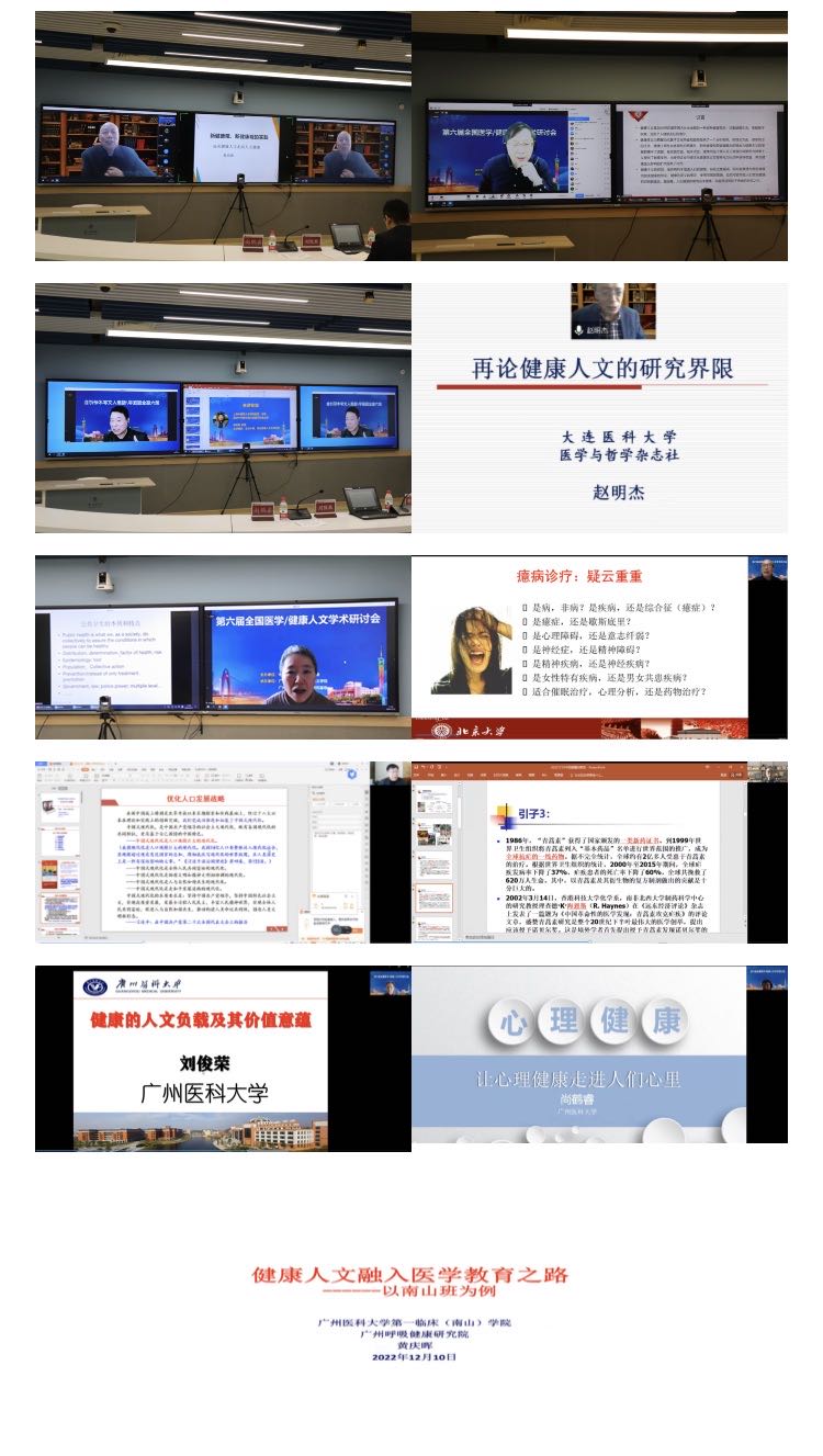 《医学与哲学》杂志编委会名誉主任委员、名誉主编杜治政教授,北京大学张大庆教授,上海中医药大学何裕民教授,大连医科大学赵明杰教授,北京大学丛亚丽教授、王一方教授,广东省人口发展研究院董玉整教授,广州中医药大学邱鸿钟教授,我校刘俊荣教授、尚鹤睿教授,广州呼吸健康研究院黄庆晖主任医师分别做主题为“新的健康观、新健康的实践:论从健康人文走向人文健康”“再论健康主义的悖论”“古为今用,推动中国健康人文引领世界”“再论健康人文的研究界限”“公共卫生视角下的健康人文”“癔病:疾苦叙事与哲学反思”“生育文化与健康”“中医的健康智慧”“健康的人文负载及其价值意蕴”“让心理健康走进人的心里”“健康人文融入临床教学之路:以南山班为例”的主题报告。