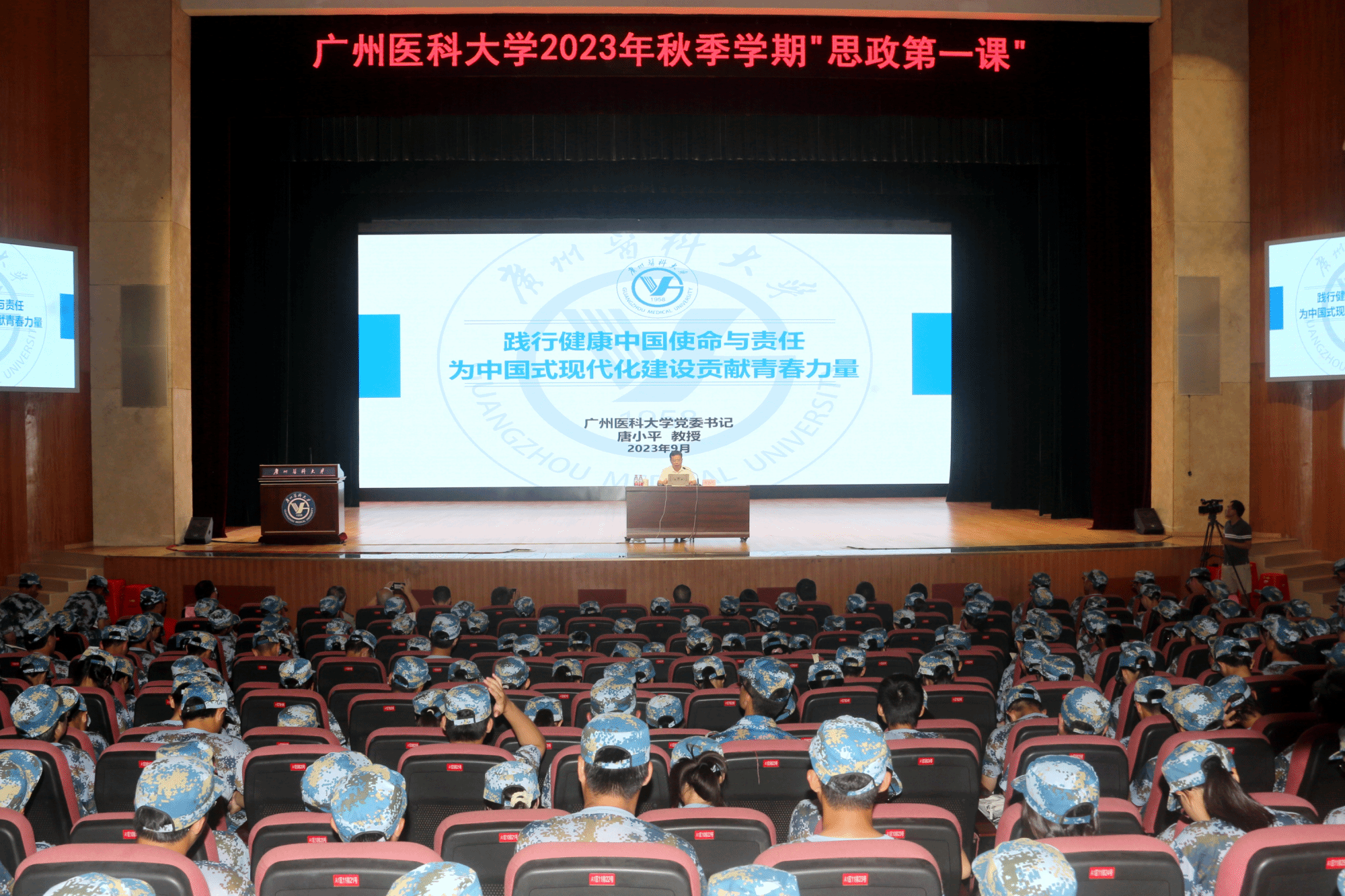 9月20日下午,学校党委书记唐小平教授为2023级的新生讲授思政第一课,他以“践行健康中国使命与责任 为中国式现代化建设贡献青春力量”为题,阐释了中国式现代化与健康中国建设的重要联系,介绍了健康中国建设中的广医担当,并勉励同学们肩负青春责任,德智体美劳全面发展,在中国式现代化建设和健康中国建设中绽放绚丽的青春之花。