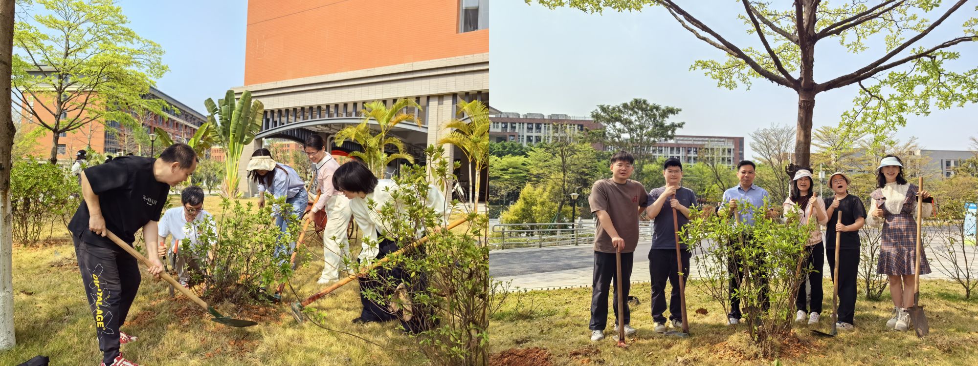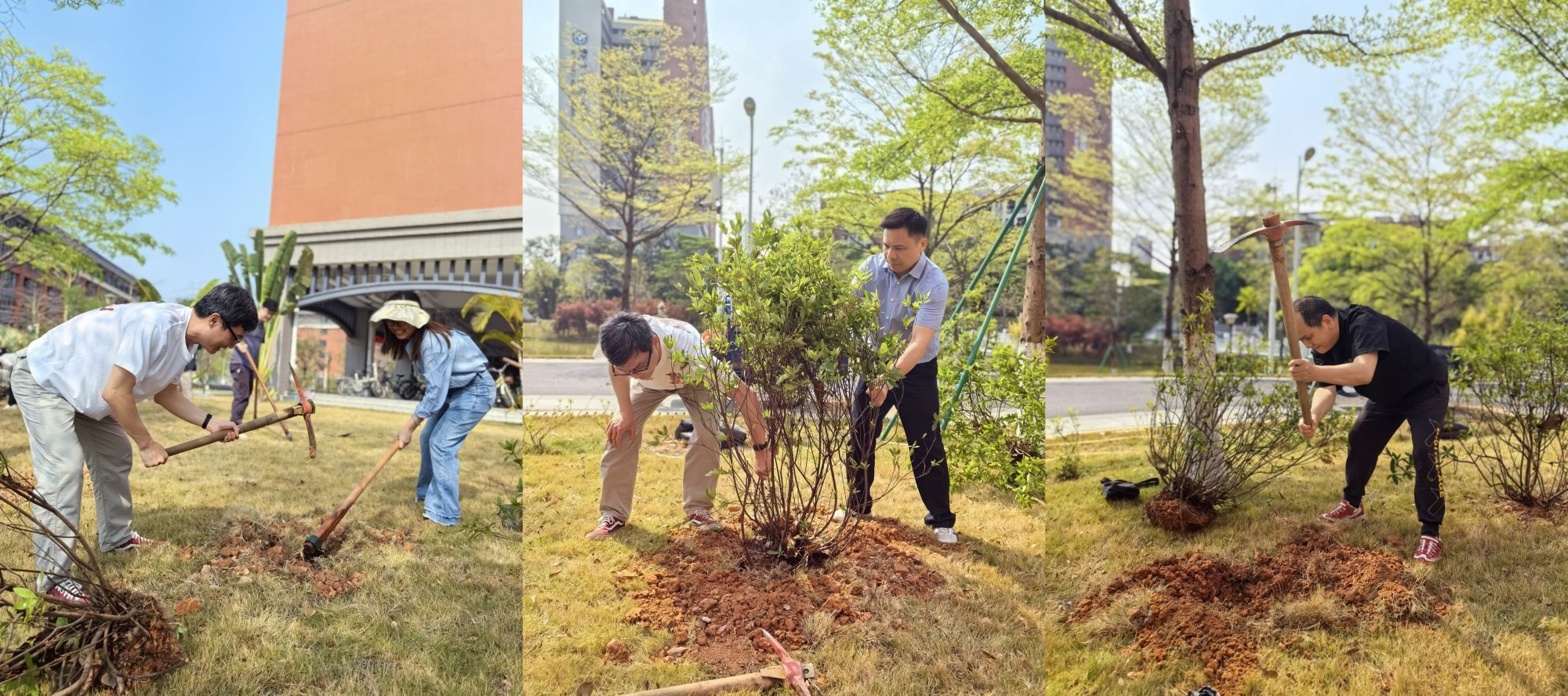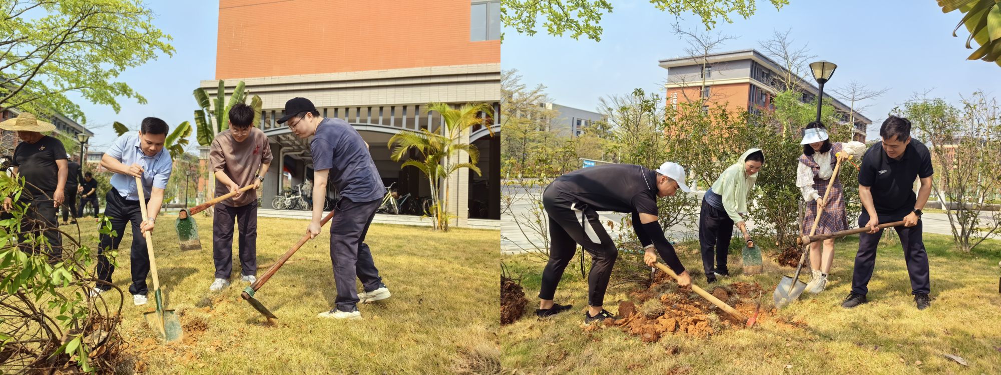 师生代表在校园植树